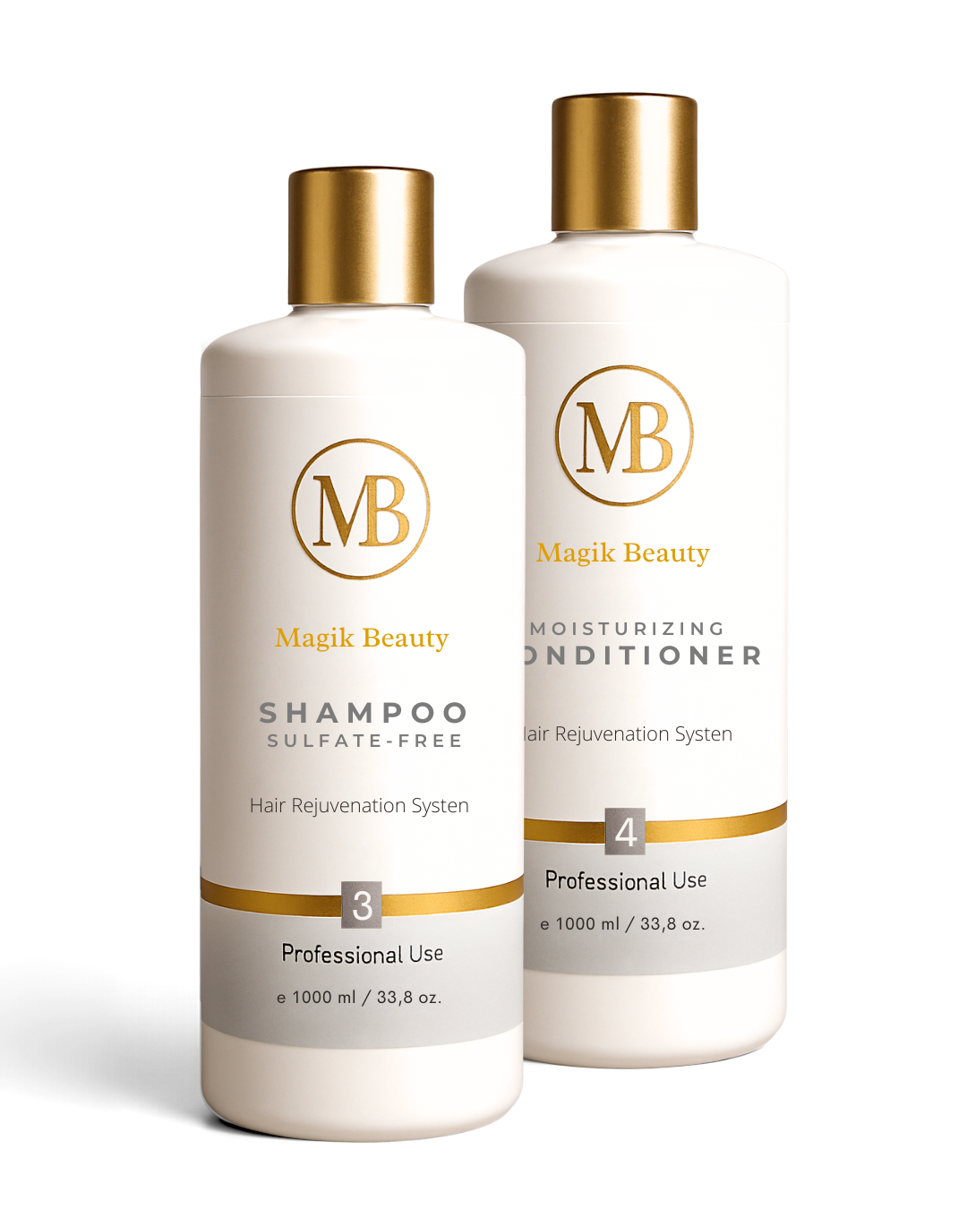 Our Magik Beauty Hair Care System is a straightener treatment that combines botanicals and amino acids that act on the hair leaving it healthy, without frizz and providing full control of the hair. It Hydrates, moisturizes, revitalizes and gives manageability and shine to each strand of hair. This product is highly recommended for sun damage, chemicals, bleached processed and colored hair. it is specially formulated to straighten hair naturally leaving it manageable, hydrated and full of shine. This smoothing treatment is free of formaldehyde so it is harmless to health.