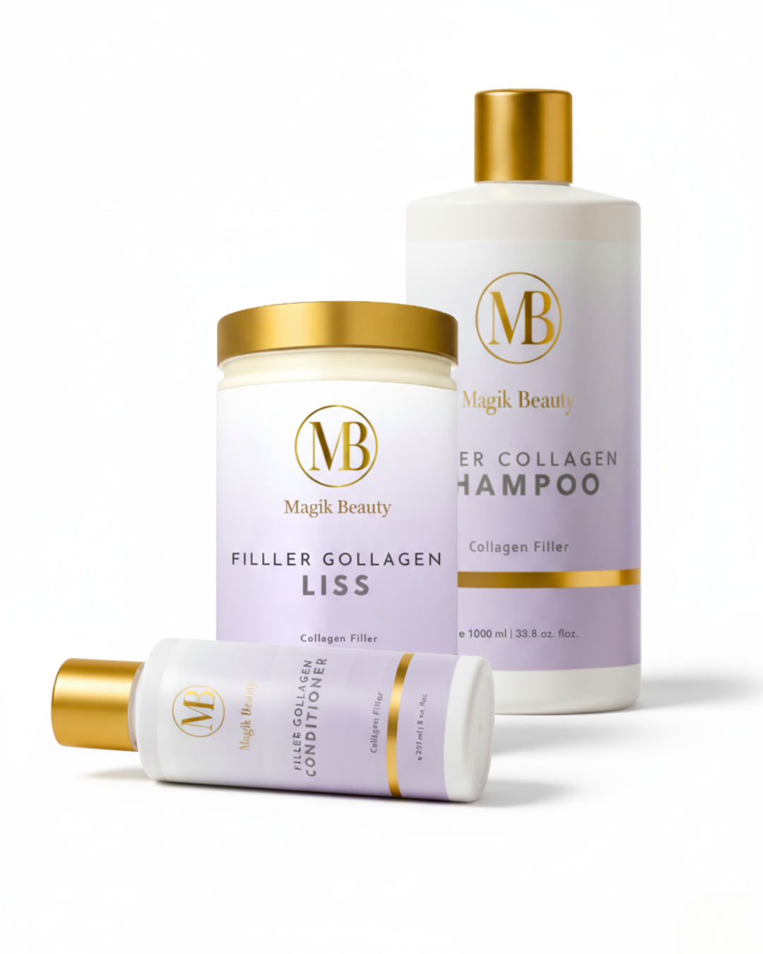 Our Magic Beauty Collagen Treatment composed of three ultra-concentrated formulas that restore youthful density, improve elasticity and fullness, and reconstruct damaged cuticles so hair looks healthy again. Collagen is the most abundant protein in the body, containing a variety of amino acids such as glycine, hydroxyproline, proline and arginine. Our Treatment is enhanced with collagen, squalane and provitamin B5, Collagen Shampoo, Collagen Hair Mist and Collagen Hair Mask revitalize hair from the inside out. Your hair will looks thicker, feels stronger, and will radiate a wow- factor so your hair looks at its best!